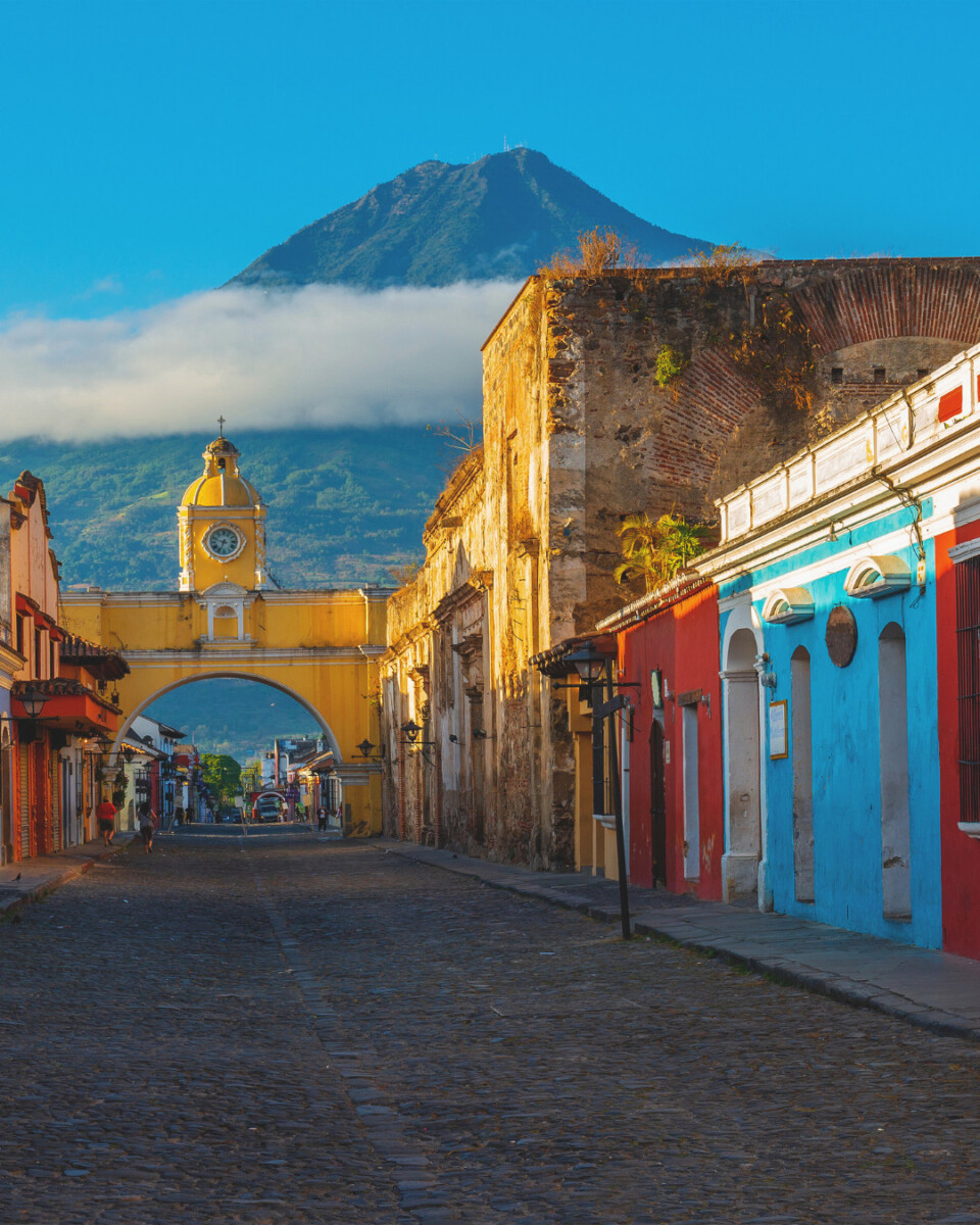 Aterrizamos en el caos vibrante de Ciudad de Guatemala para escapar de inmediato hacia la Antigua Guatemala. Esta ciudad, protegida por los volcanes de Agua, Fuego y Acatenango, es un museo vivo de calles empedradas y fachadas barrocas que han sobrevivido a terremotos durante siglos. Nuestra primera noche se siente como un viaje en el tiempo bajo la luz de las antorchas.