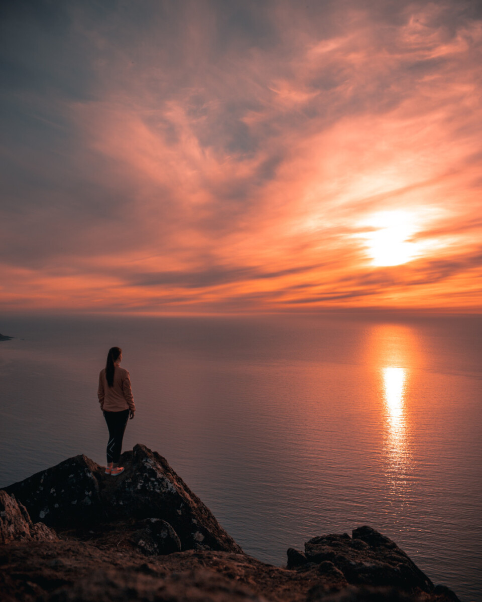 ¿Quién dijo que el Ártico era frío? En julio, las Lofoten nos regalan un verano sorprendente. Disfrutaremos de playas de arena blanca y aguas tan cristalinas que te harán dudar de si estás en el Caribe o en el Círculo Polar. Los más valientes podrán incluso disfrutar de un baño refrescante en estas aguas puras, una experiencia que te reinicia el alma. Sentiremos la arena de Kvalvika bajo nuestros pies y el calor de una hoguera en la playa de Uttakleiv, rodeados de la complicidad de quienes buscan algo más que unas vacaciones convencionales.